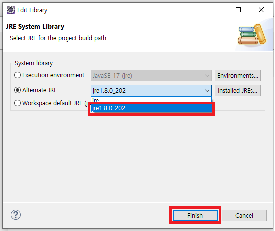 현재 사용 중인 Java 버전은 1.8.0_202임으로 각장 본인에 맞는 자바 버전을 설정하면 된다.