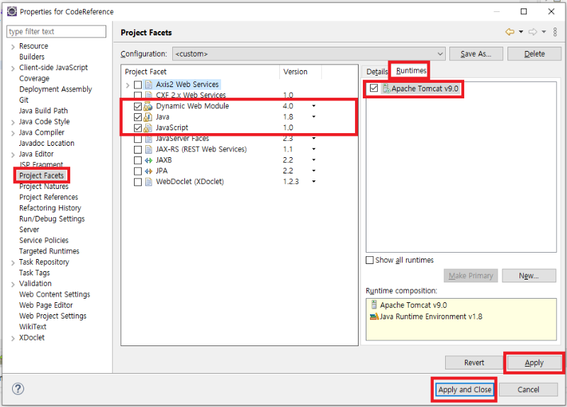 3. Project Facets 설정