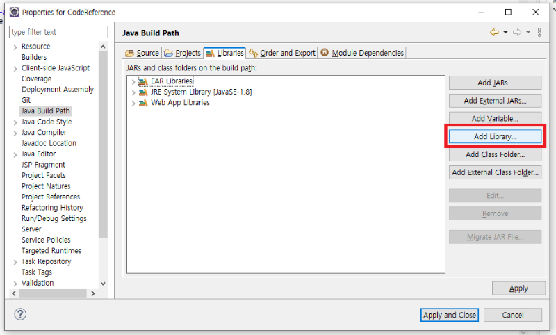 보통 각 프로젝트에 이클립스가 기본적으로 정해준 Java버전이 설정돼 있을 것이다. 컴퓨터에 설치돼 있는 Java 버전으로 수정할 예정이다. [자바 설치 방법]