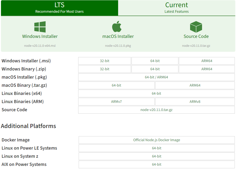 • Current(최신버전) - 현재 다운로드 받을 수 있는 최신 버전. (최신 기술 지원됨)