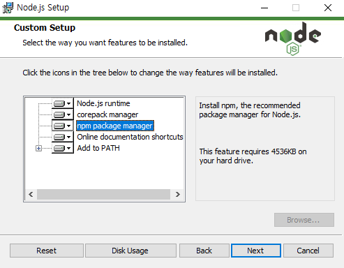npm -v를 실행 시켜보면 Node.js와 같이 버전(예.8.19.2)이 표시될 것이다.