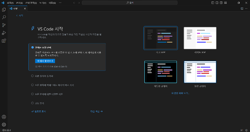 이후 Vs Code가 한글로 변경된 것을 확인할 수 있다.
