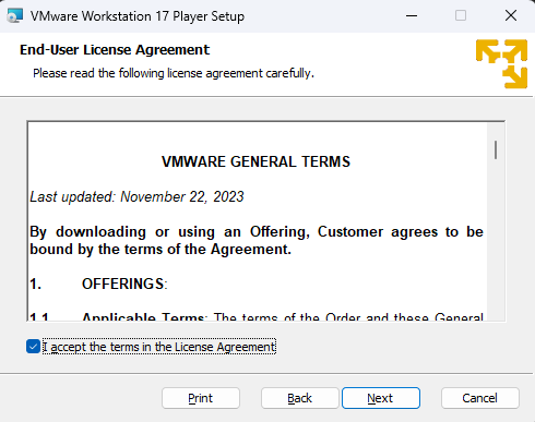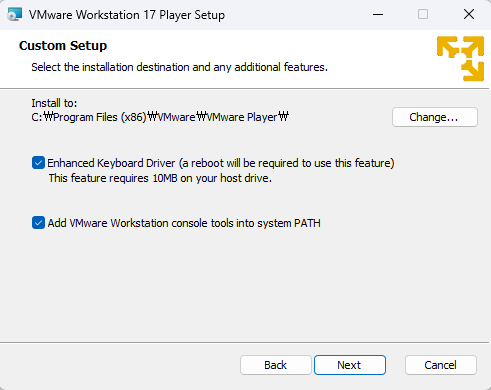 (2024.05.21 기준) - Download Now를 클릭하면 Cloudflare 다운로드 서버 오류가 발생하는 것으로 보인다. 유저들끼리 공유된 다른 URL로 들어가서 설치해보자. 다운로드 링크 (CDS Repository - /var/www/public/stage/session-120/cds/vmw-desktop/player/17.5.2/23775571/windows/core (vmware.com)