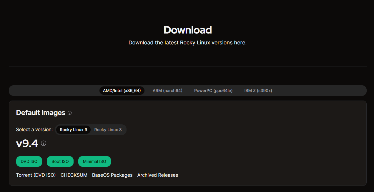 아래 Rocky Linux 공식 홈페이지로 들어가 최신 버전으로 설치해보자. 2024년 05월 22일 기준 9.4가 Latest Version이니 필자의 경우 9.4버전으로 진행하겠다.
